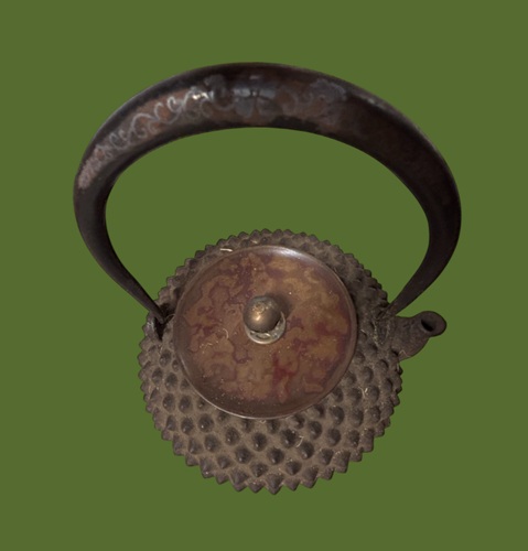 当時の 職人技 を創意工夫して表現された 逸品 で、彫金細工が面白く、現在では見られない珍しい鉄瓶です。