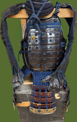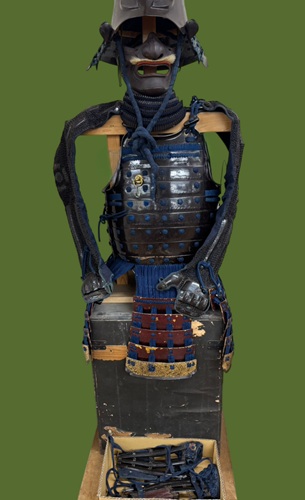 この作品は明治時代の 甲冑 で、当世具足と言われる鎧の一様式で、鎧櫃に入っており買取させて頂きました。