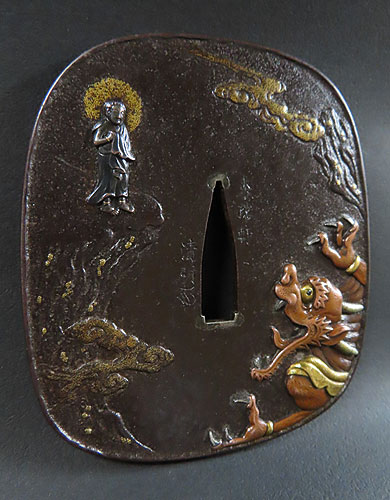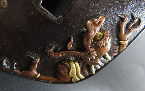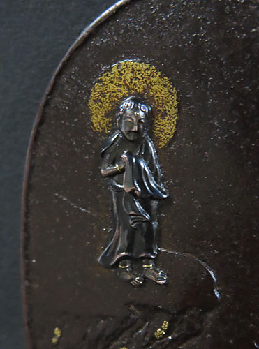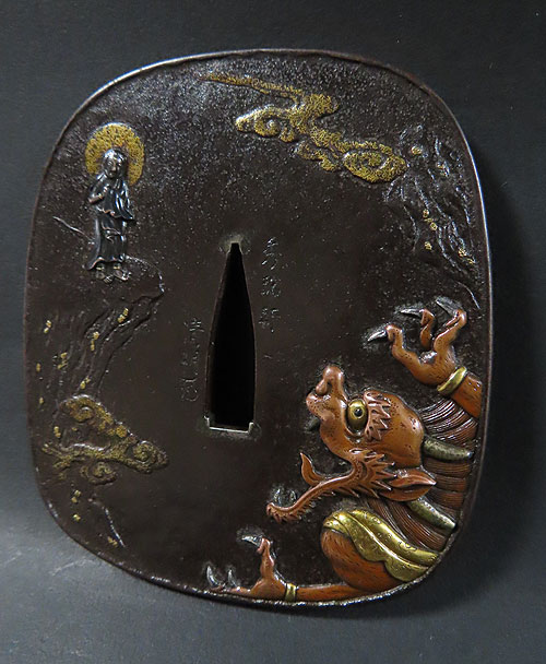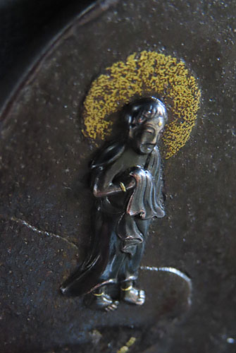 お釈迦様の象嵌細工も立体感がありますが、特に鬼の象嵌細工は非常に立体感があり、また迫力ある躍動感が素晴らしく、さすが昔の職人技が冴える逸品です。