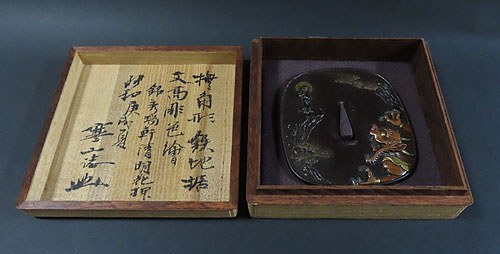 「秀瑞軒清明」の作品で、非常に手の困んだ象嵌細工や彫金細工が施されております。