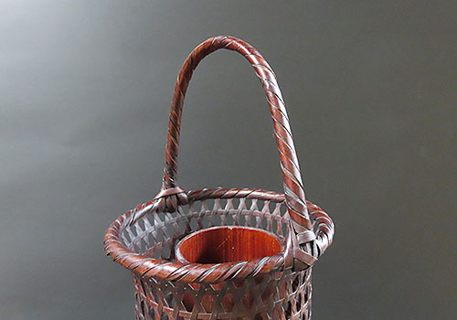 白竹を大胆に編み込んだ細工からは、名人の技ならではの風格が漂い、活ける花をより一層引き立ててくれます。