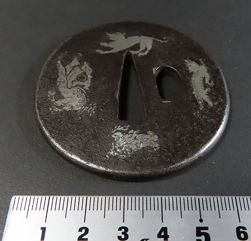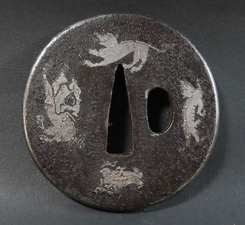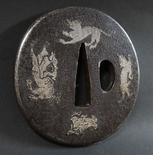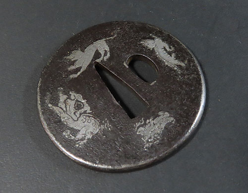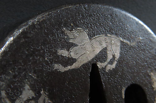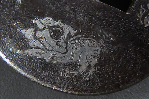 表面には銀象嵌で動物が四匹施されておりますが、長年の時代を経てきて薄く消えかけた部分もあります。