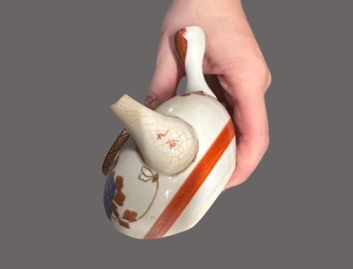 さすが昔の 職人技 と思わせる、面白い図柄や赤絵付けが冴える作品です。