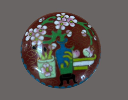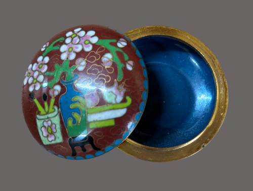 この作品は可愛らしい作品で、有線七宝の細工も細かく丁寧で、伝承された昔の 職人技 が見られる作品です。