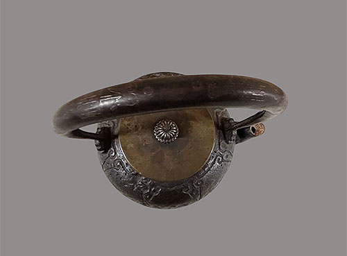 蓋は銅器で出来ており、摘み部分には彫金細工が綺麗に施されております。