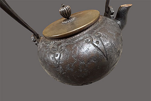 当時の 職人技 を創意工夫して表現された 逸品 で、彫金細工が面白く、現在では見られない珍しい鉄瓶です。