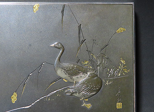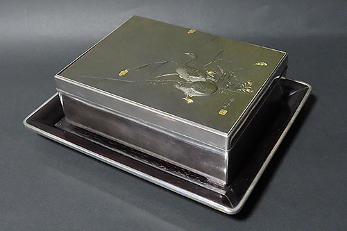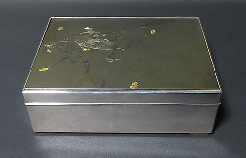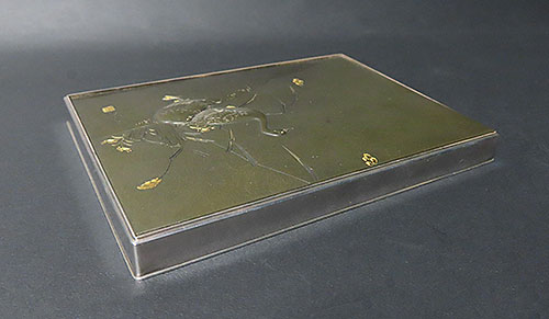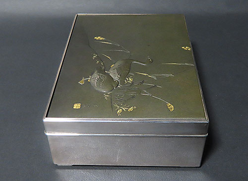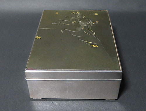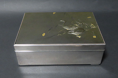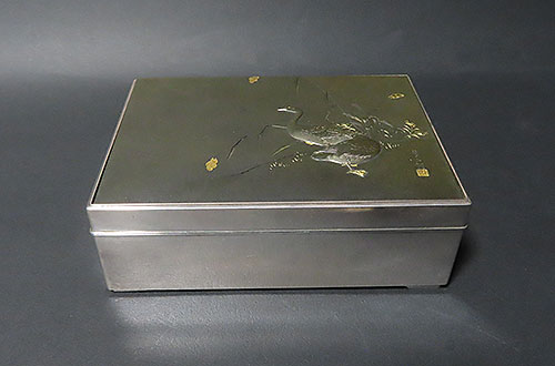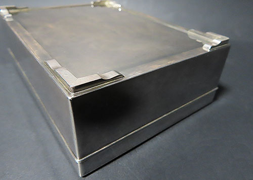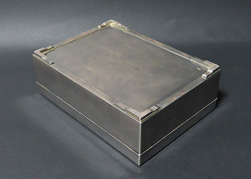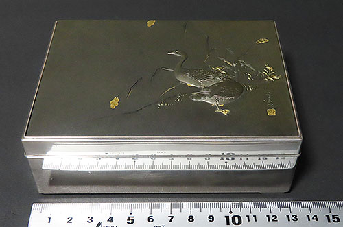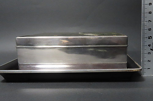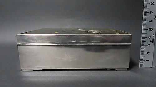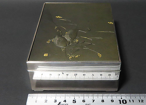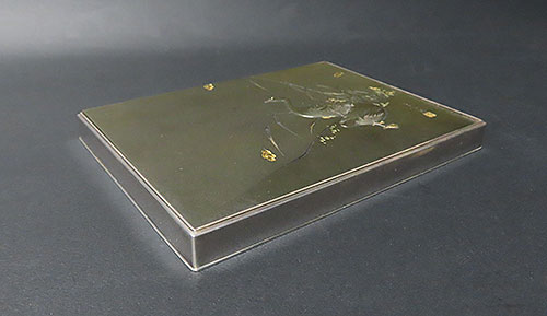 純銀の小物ケースで普通、底部は木製で作られておりますが、底の部分まで純銀で出来ており、非常に丁寧に作られた上手の作品です。