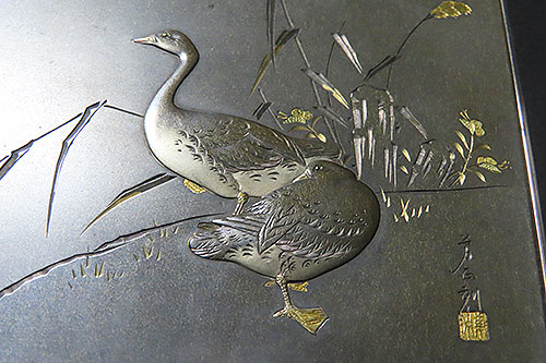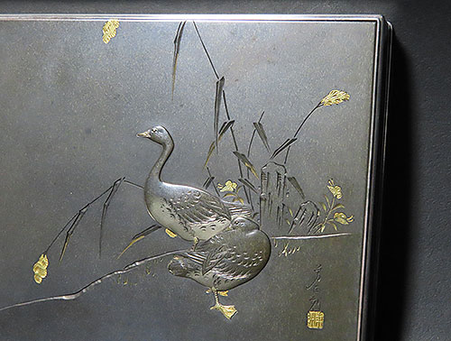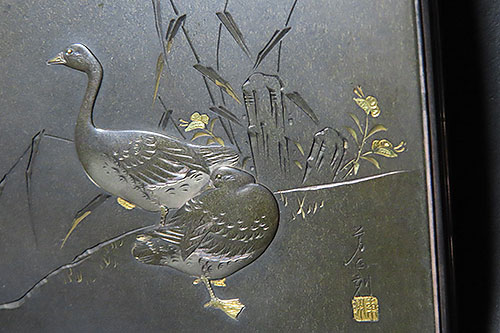 現在ではこの様な作品は作れず、また象嵌細工や彫金細工の 技法 を伝承する作家もおりません。