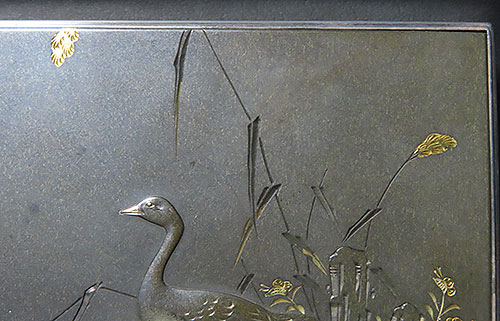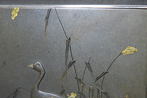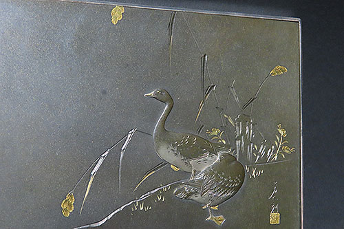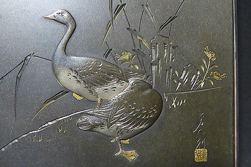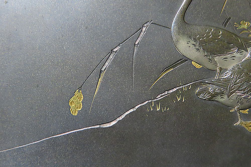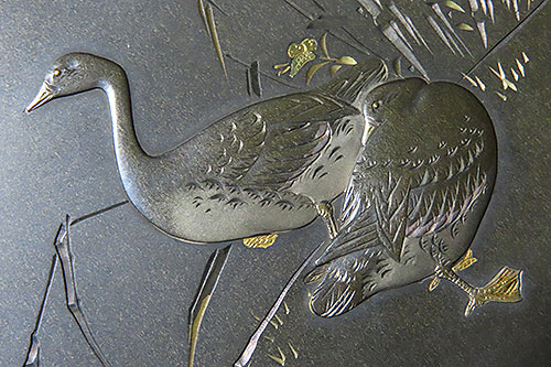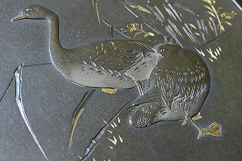 明治時代には 廃刀令 が発令され、戦う道具(刀や槍、鎧兜)が作れず、金工作家は苦労の末、日本独自の刀や甲冑の製造技術を工夫して伝承 された金工技術でこのような画期的な 金工作品 を作りだし、当時のヨーロッパの 博覧会 で大絶賛され、日本の金工作品 や 工芸品 の円熟期を迎えました、そんな現在でも残っている数少ない貴重な名品です。