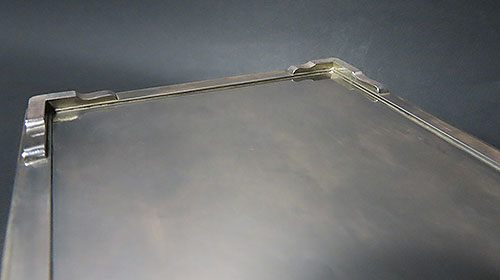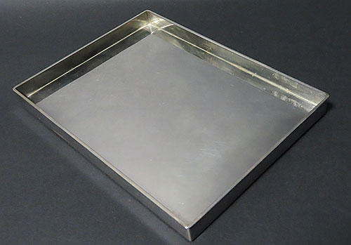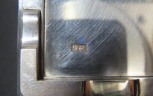 ご覧のように、採光の加減で白く光っておりますが、歪んだり、曲がったりして傷んでいる所も無く、非常に保存状態 の良い品物で底部には純銀の刻印があります。