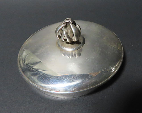 昔の作品で、銀地に丁寧な 打ち出し 模様が綺麗な品物です。現代の作家ではなかなか作れない 名品 です。