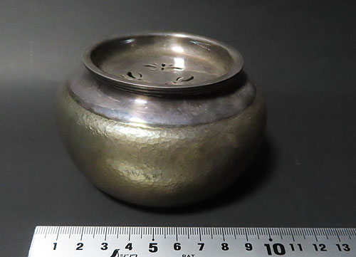 まずは、この作品は煎茶道具や抹茶道具に使われる銀瓶です。