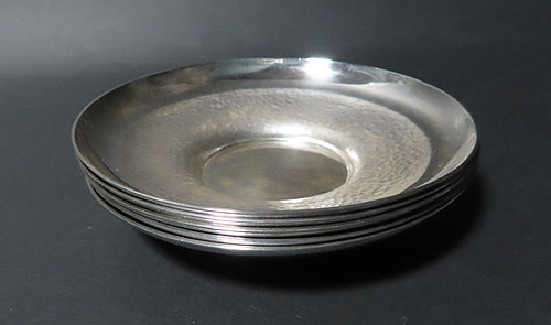 建水や茶托、湯冷ましの三点も綺麗な状態 で、それぞれ、地模様には綺麗な槌目が丁寧に施されており凹みや傷、水漏れ等無く非常に保存状態 の良い品物です。