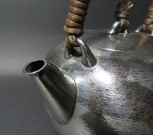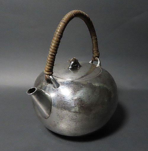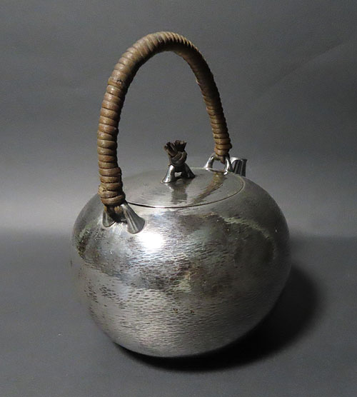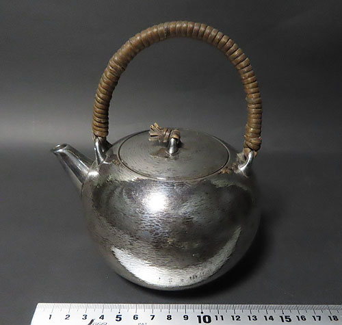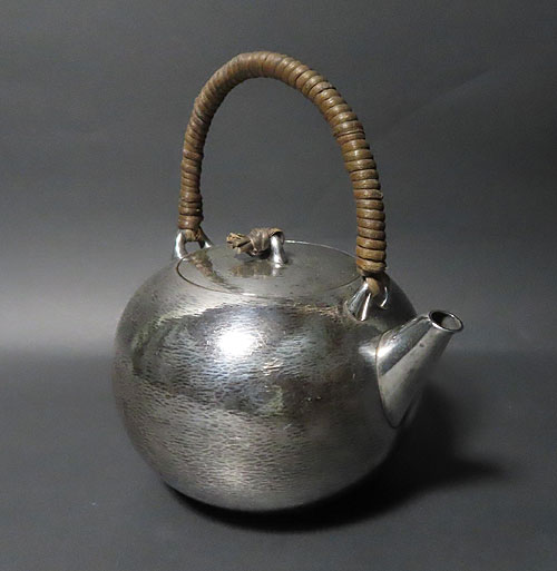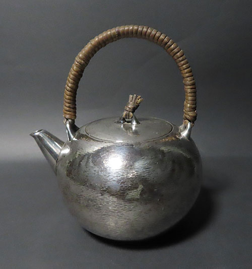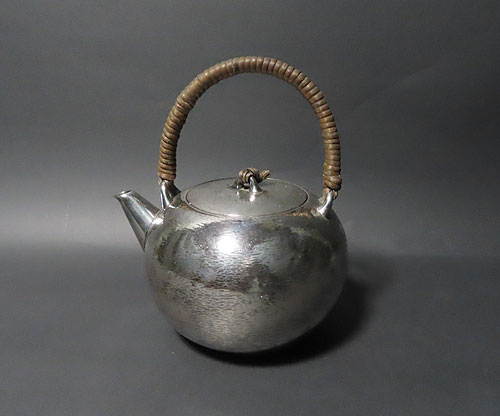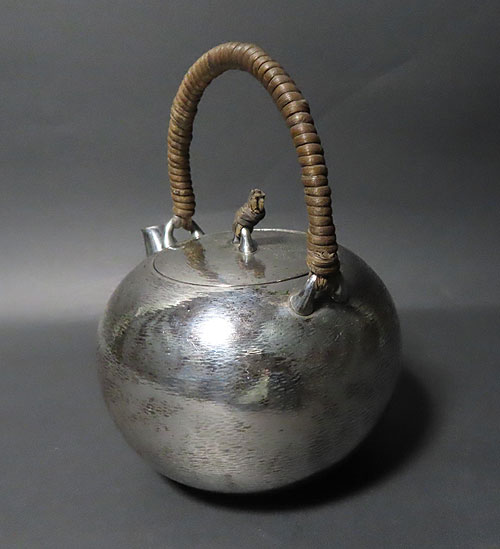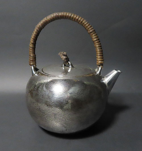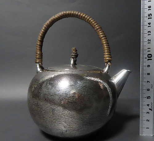 材質は純銀製で煎茶道具や抹茶道具に使われる銀瓶です。