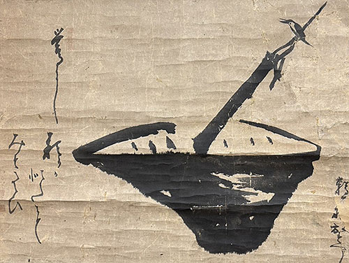 水墨画の面白い図柄で、木下逸雲の特徴や表現方法が発揮された 逸品 です。