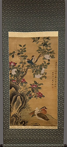 日本の掛け軸ならではの上品で優雅さが漂う存在感のある掛軸で、