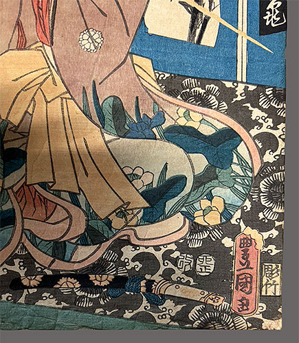 この 浮世絵 の 木版画 は、歌川豊国の 浮世絵の相撲絵で、左側を見ると分かりますが、絵の続きがあります。
