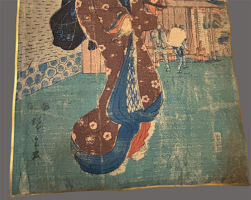 この 浮世絵 の 木版画 は、歌川豊国の 浮世絵の相撲絵で、左側を見ると分かりますが、絵の続きがあります。