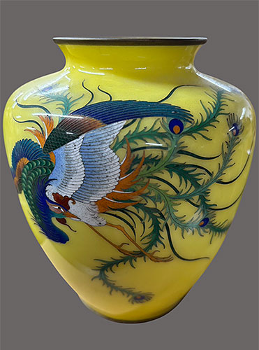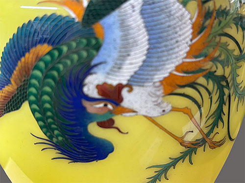 昔からよく見られる 七宝焼 で、このような 図柄の逸品は数多く制作されています。