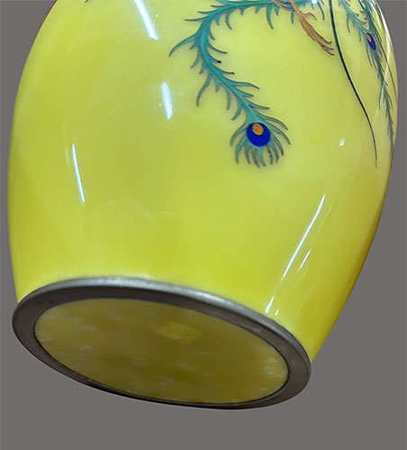 この作品は可愛らしい作品で、有線七宝の細工も細かく丁寧で、伝承された昔の 職人技 が見られる作品です。