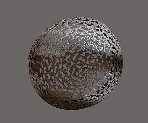 火屋は純銀で、金工作品 の中でも、丁寧な象嵌細工や彫金細工が施され、彫る技法や嵌める技法が素晴らしい名品です。