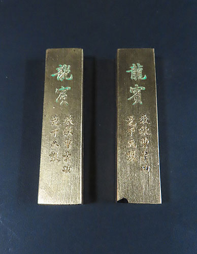 このような固形墨の場合は「墨は成長する」という言葉があり、特に20年から50年経ったものは「古墨」と呼ばれ珍重されるるようで、この墨もそうです。