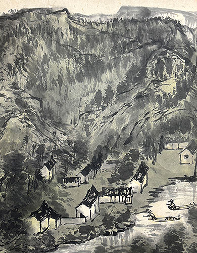この作品は 保存状態 も良く、水墨画の昔の職人技がみられ、むかしから 伝承 された技法 を使われています。