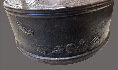 蓋は銅器で出来ており、摘み部分には彫金細工が綺麗に施されております。