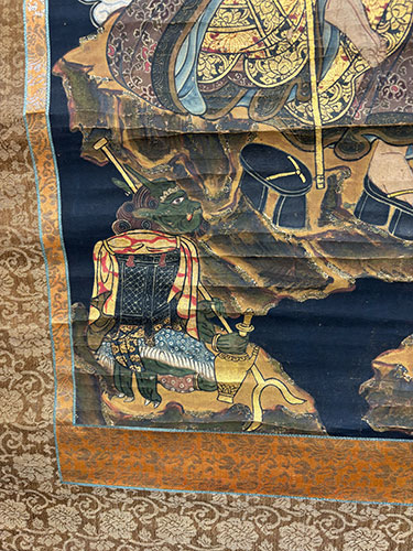 このような昔の○○のように見えますが、本来の時代でなく、時代付けや偽物も多くあります。この仏画は中国骨董品の作品です。