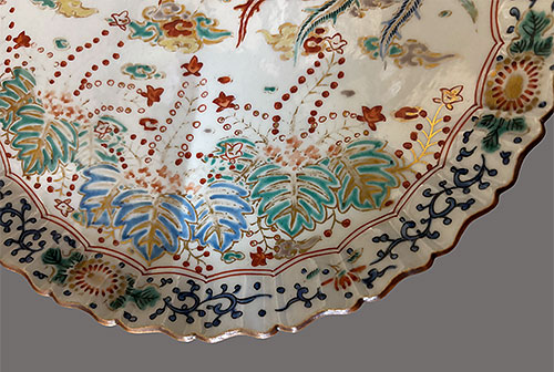 江戸時代から明治時代にかけて作られた九谷焼の皿です。明治時代頃の九谷焼です。