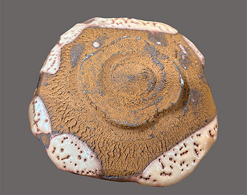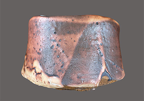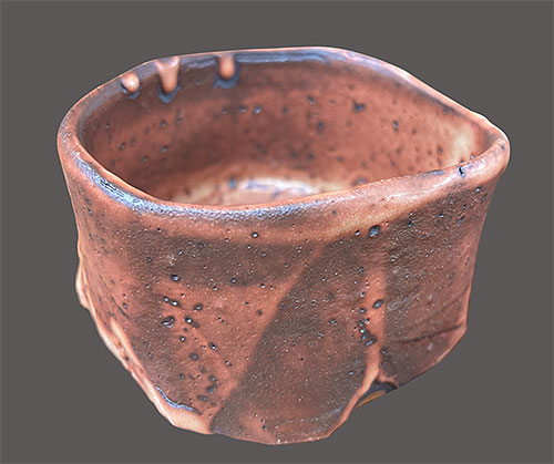 この茶道具の陶芸作品も彼の得意とする抹茶道具の茶碗で、土と釉とが一体となった奥行きのある素朴な釉調。