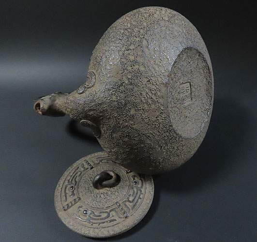 彼の作品のなかでも 上手 の 名品 です。非常に 重量感 のある大ぶりの鉄瓶です。