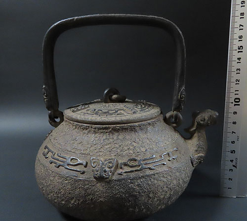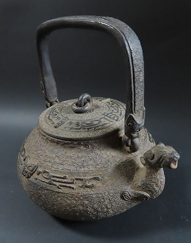全体的に 重量感 があり、ご覧のように面白いデザインの鉄瓶です。