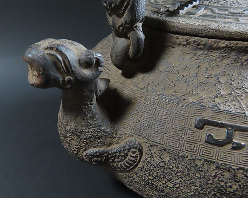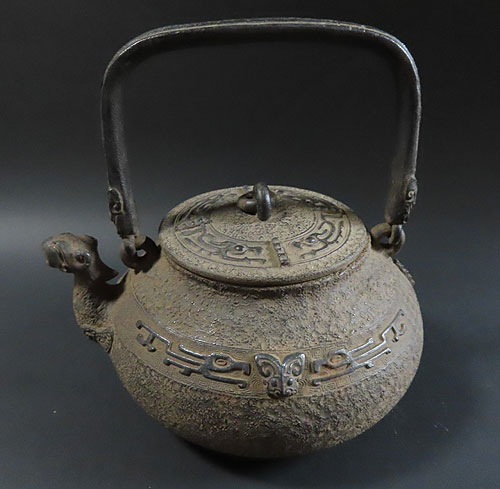 当時の 職人技 を創意工夫して表現された 逸品 で、彫金細工が面白く、現在では見られない珍しい鉄瓶です。