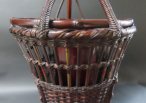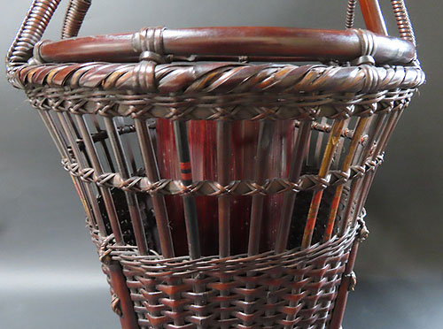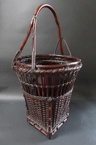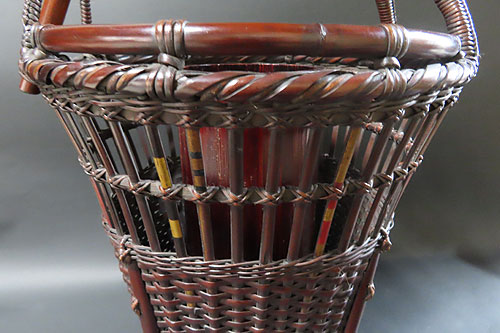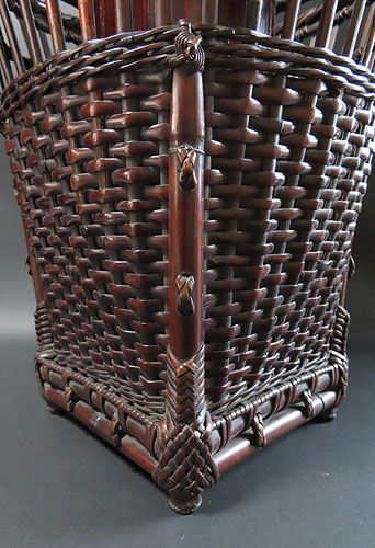 全体の形と竹の編み方が非常に面白く、現在ではこれだけ精巧な竹芸品は、なかなか見られず、昔の 職人技 が生かされた 逸品 です。