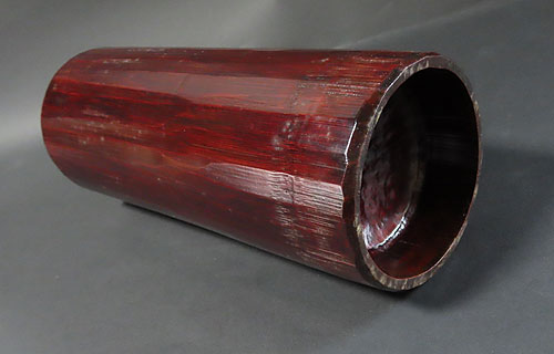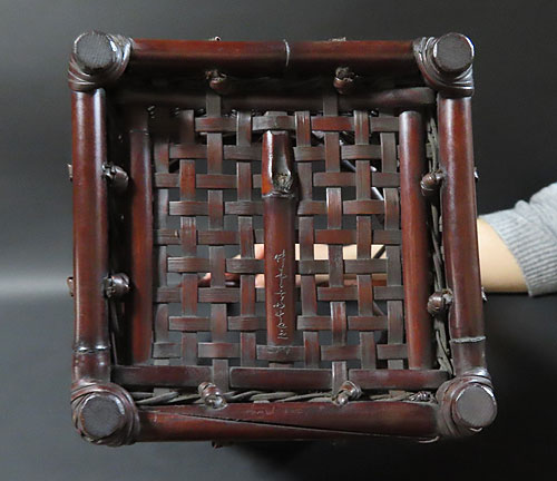 最近では囲炉裏端の煤竹の材料が無く、この作品の様な竹芸作品が出来ないので竹芸家の作家が困っておられます。。