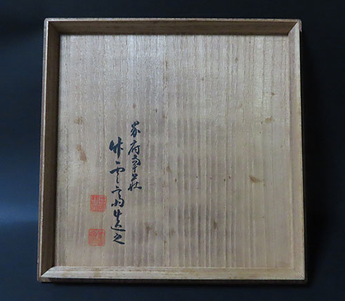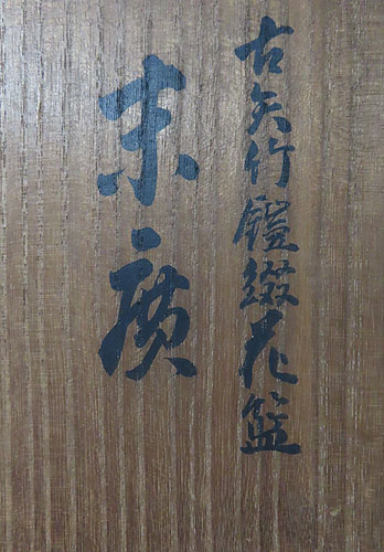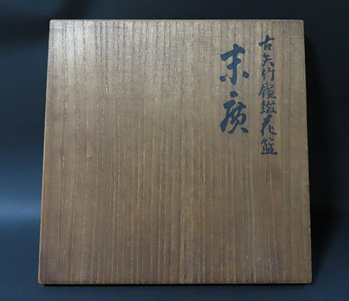 初代 前田竹房斎の竹籠 花入 で、共箱 です。材質は竹製で、今では殆ど見られない貴重な煤竹が使用されています。