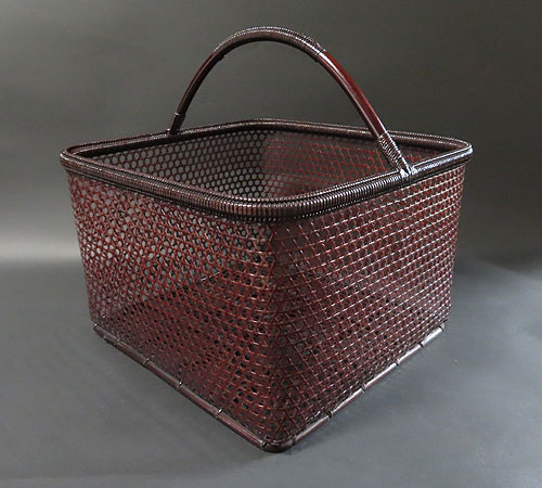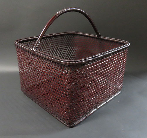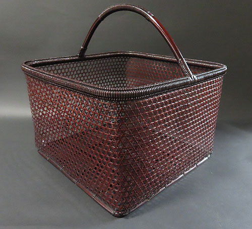 いろいろな種類の竹籠がありますが、一般的には日本の竹籠は、昔の囲炉裏端で使われていた煤竹が使用されています。