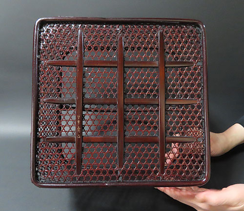 最近では囲炉裏端の煤竹の材料が無く、この作品の様な竹芸作品が出来ないので竹芸家の作家が困っておられます。。