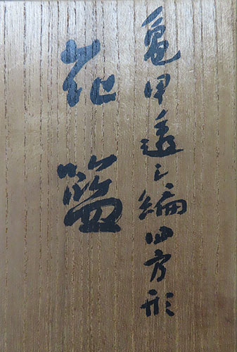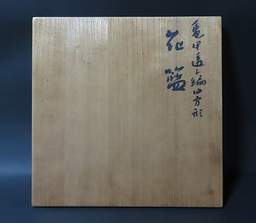 初代 前田竹房斎の竹籠 花入 で、共箱 です。材質は竹製で、今では殆ど見られない貴重な煤竹が使用されています。