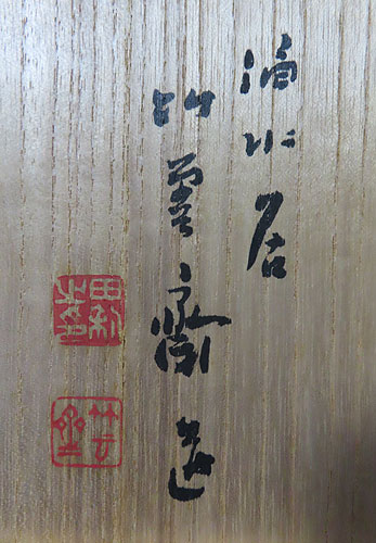 この作品の材料に使われている竹は、現在では手に入らない煤竹で、昔の囲炉裏端で百年以上燻され、天然の色合いが素晴らしい、貴重な味わいのある作品です