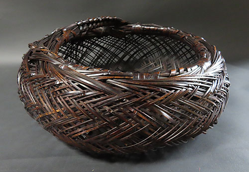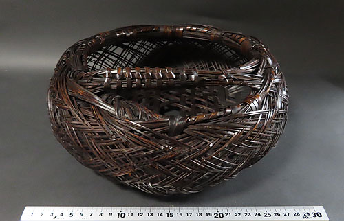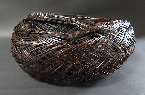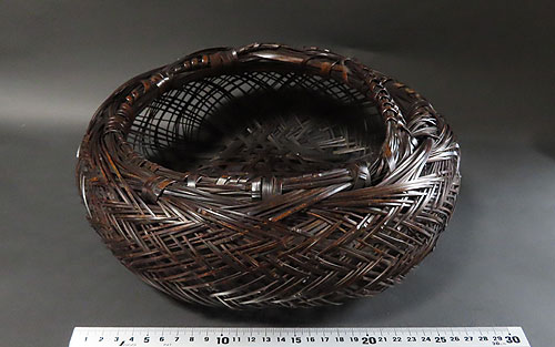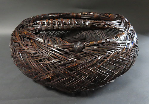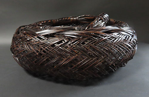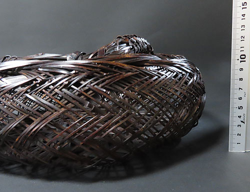 全体の形と竹の編み方が非常に面白く、現在ではこれだけ精巧な竹芸品は、なかなか見られず、昔の 職人技 が生かされた 逸品 です。