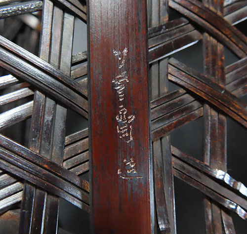 最近では囲炉裏端の煤竹の材料が無く、この作品の様な竹芸作品が出来ないので竹芸家の作家が困っておられます。。