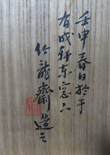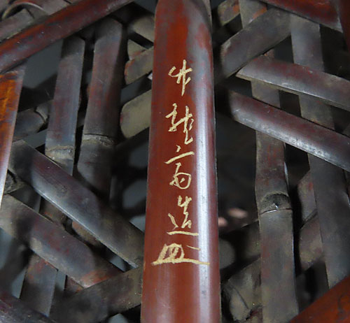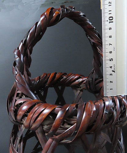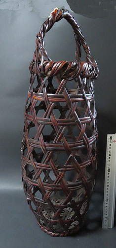 最近では囲炉裏端の煤竹の材料が無く、この作品の様な竹芸作品が出来ないので竹芸家の作家が困っておられます。。