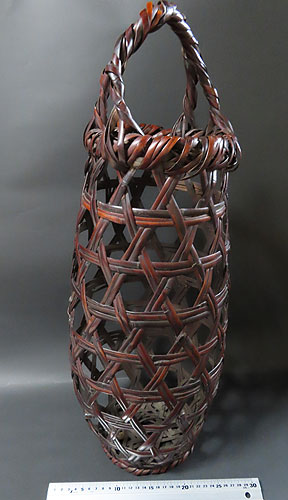 全体の形と竹の編み方が非常に面白く、現在ではこれだけ精巧な竹芸品は、なかなか見られず、昔の 職人技 が生かされた 逸品 です。