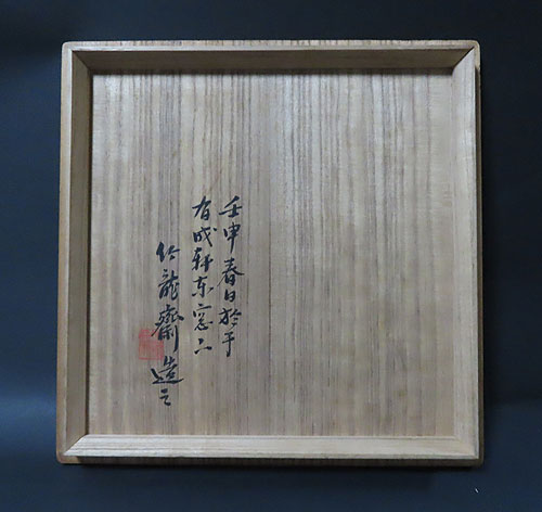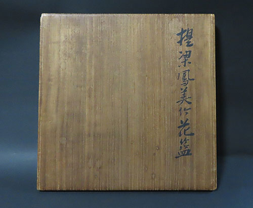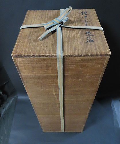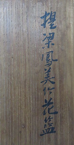 初代 前田竹房斎の竹籠 花入 で、共箱 です。材質は竹製で、今では殆ど見られない貴重な煤竹が使用されています。