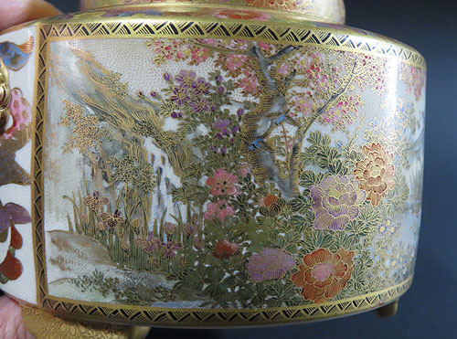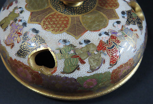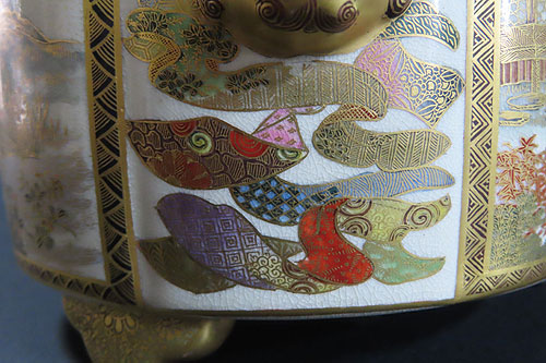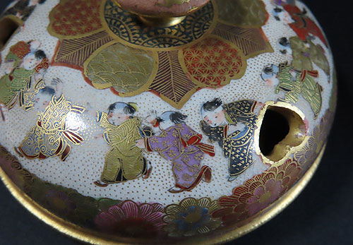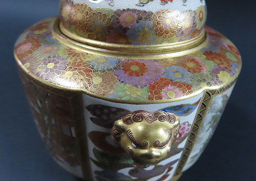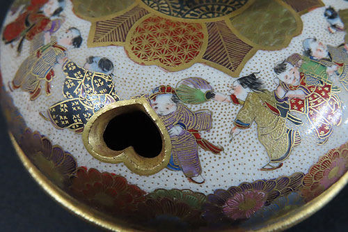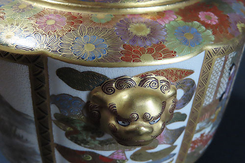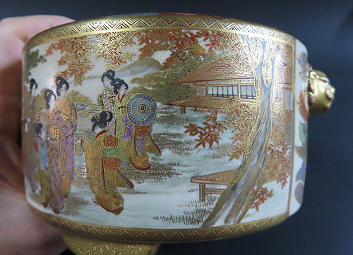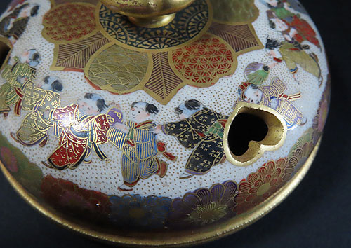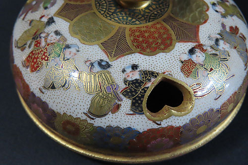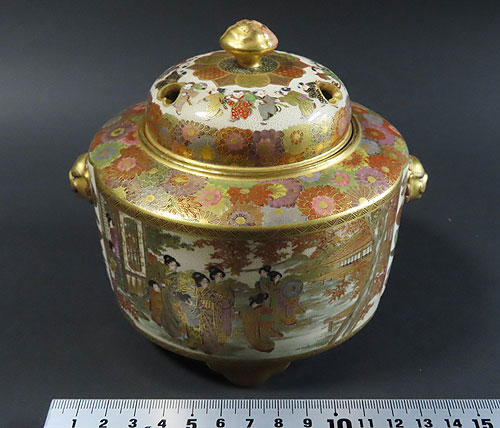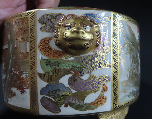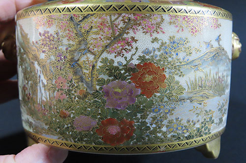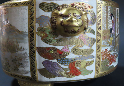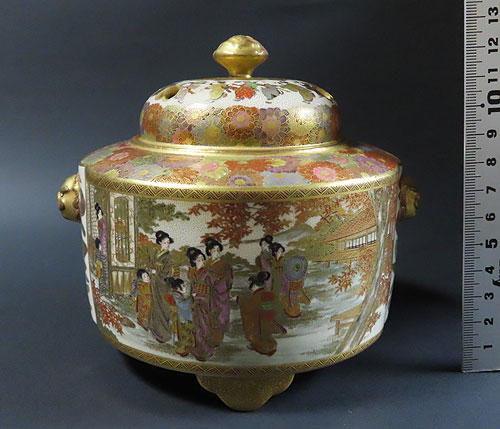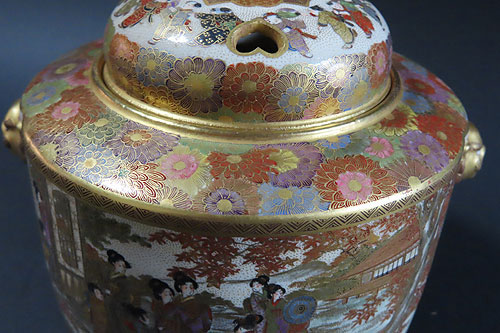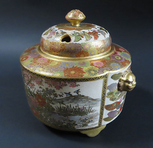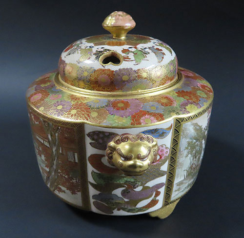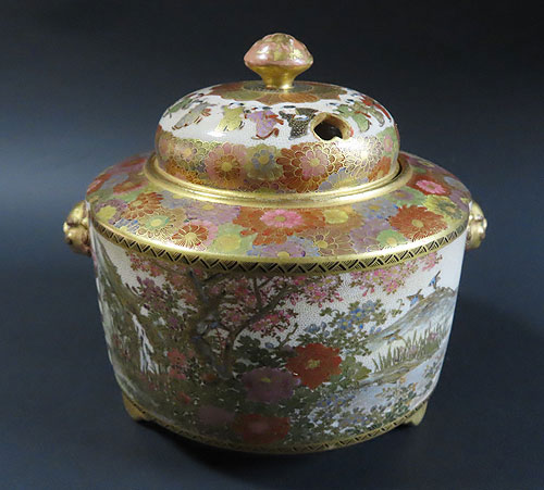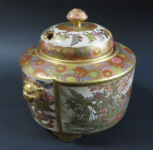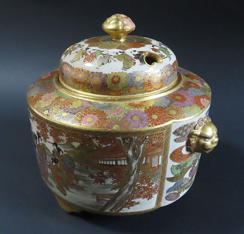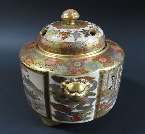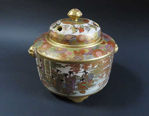 古い時代 から日本に 伝承 されている薩摩焼ならではの 技巧 が素晴らしい作品で、昔の薩摩焼の面白さを醸し出す豪華絢爛な大ぶりの香炉です。