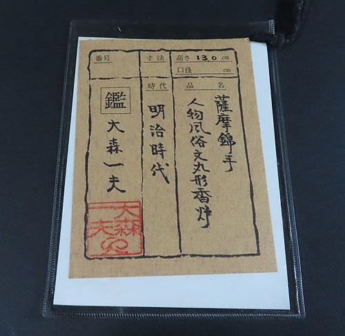 大ぶりの薩摩焼香炉で大森一夫の鑑定書が付いており、コレクター のお客様より直接お譲り頂いた品物です。