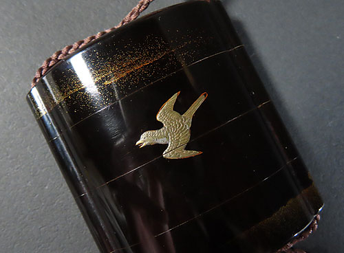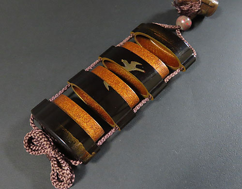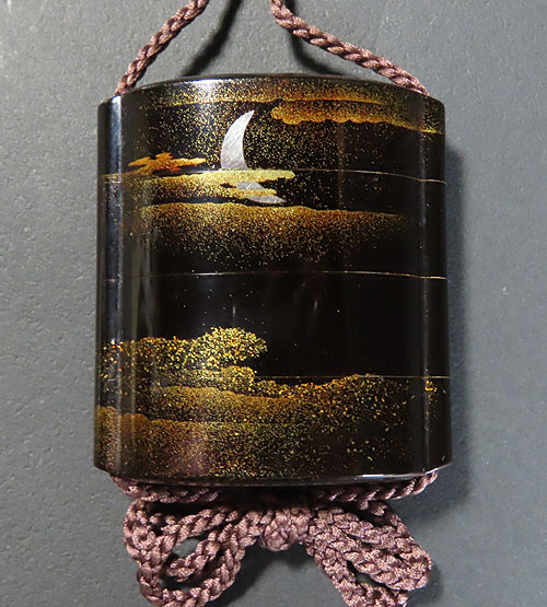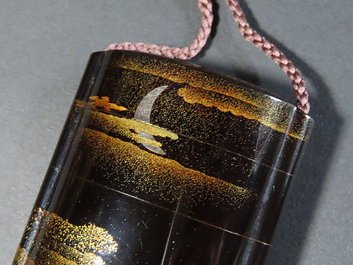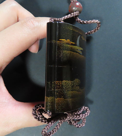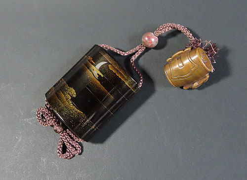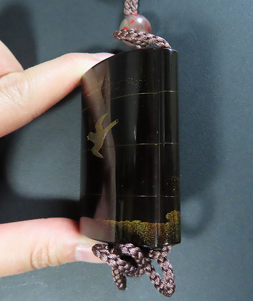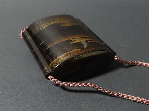 この印籠は、歌川広重の「月に雁」の作品を模して作られています。