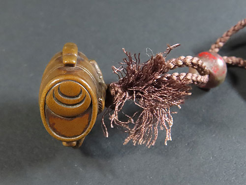 緒締めは天然石で出来ており、根付は木製です。